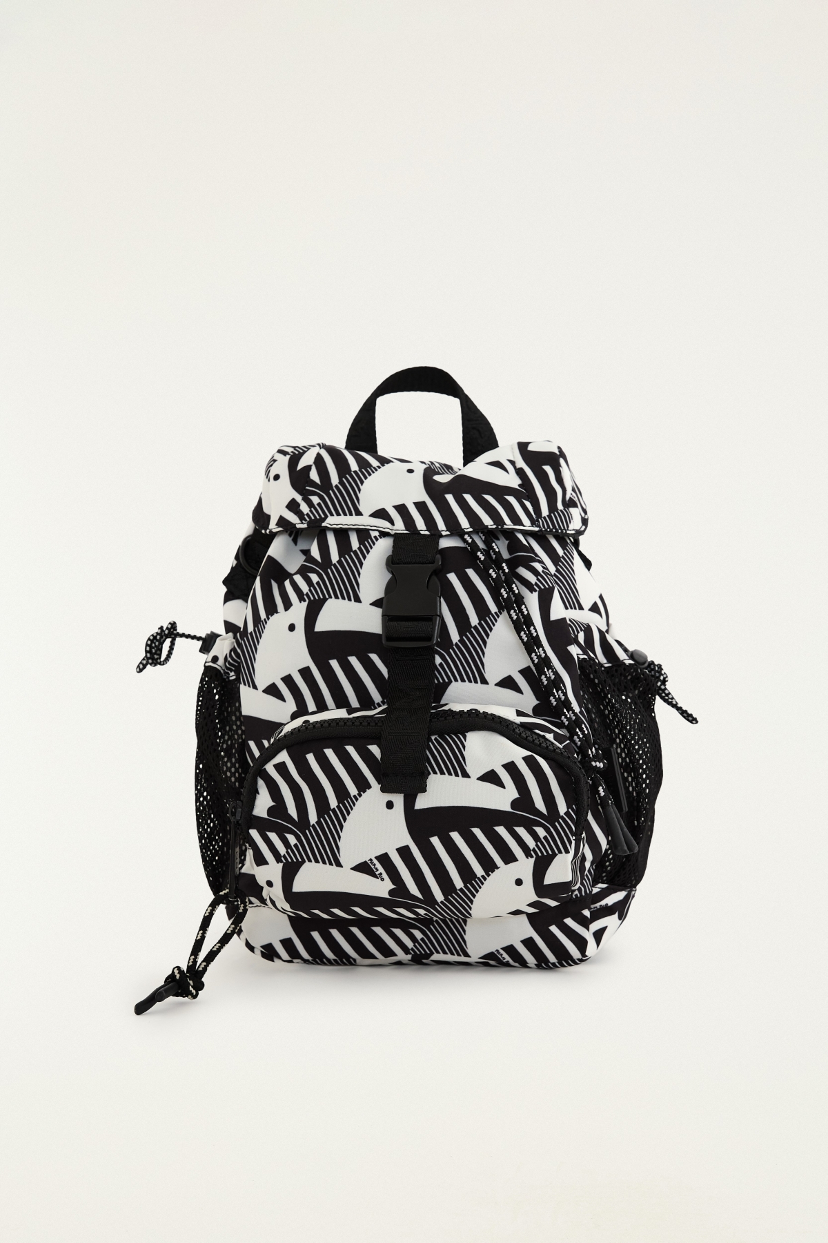 | Mochila pequena confeccionada em material resistente, com aba frontal sobreposta, tiras médias de gorgorão aplicadas com nome da marca em baixo-relevo na parte frontal, bolso frontal, bolso lateral em tela com puxador ajustável, alça longa em gorgorão com nome da marca em baixo-relevo e regulável, base reta, forro têxtil e fechamento superior por zíper e fivela de encaixe frontal. |