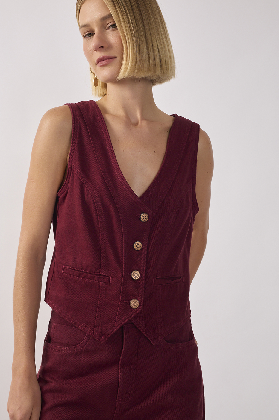 COLETE SARJA COLOR VINHO OUTONO