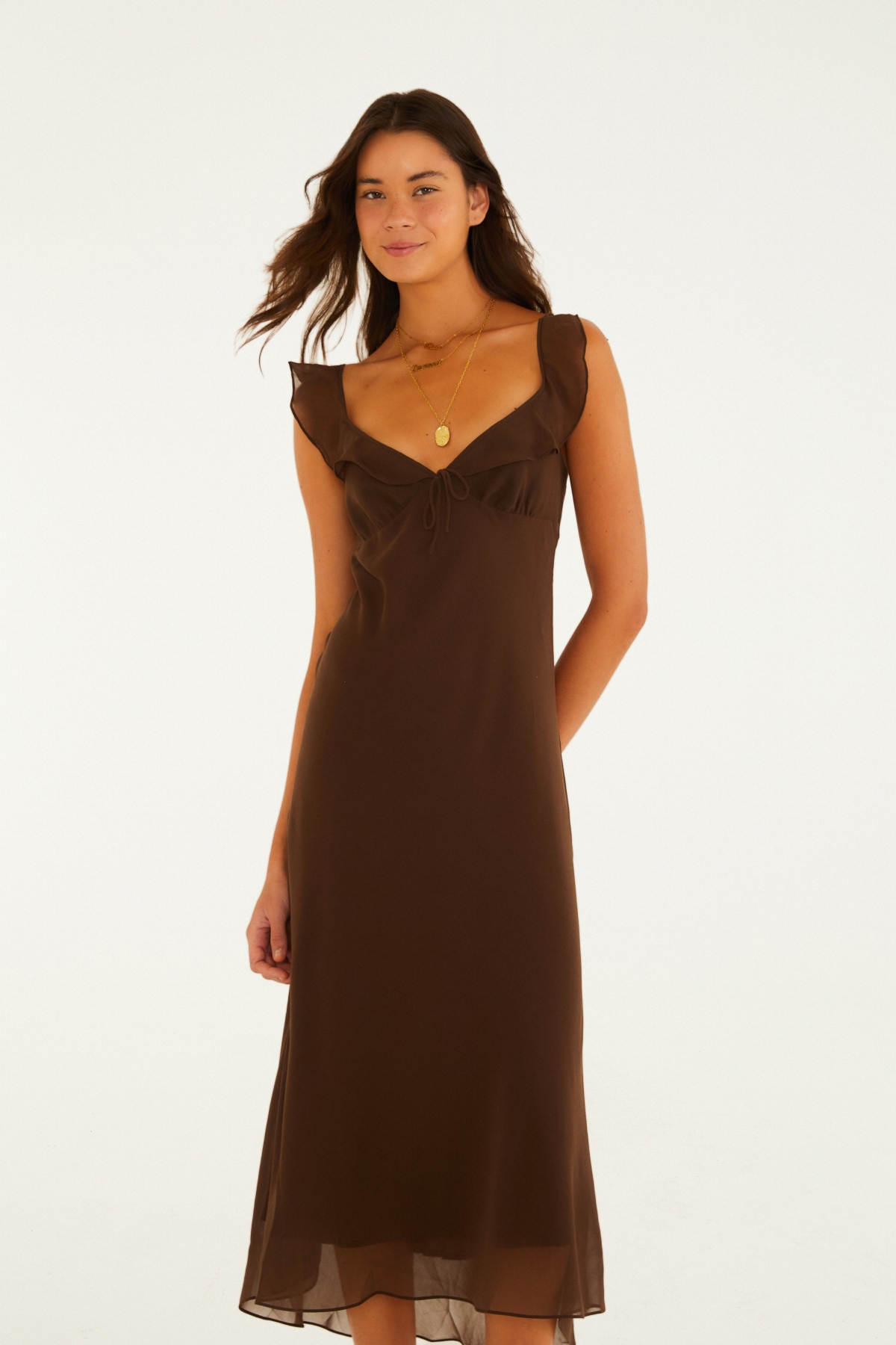 VESTIDO BABADOS ENVIESADO