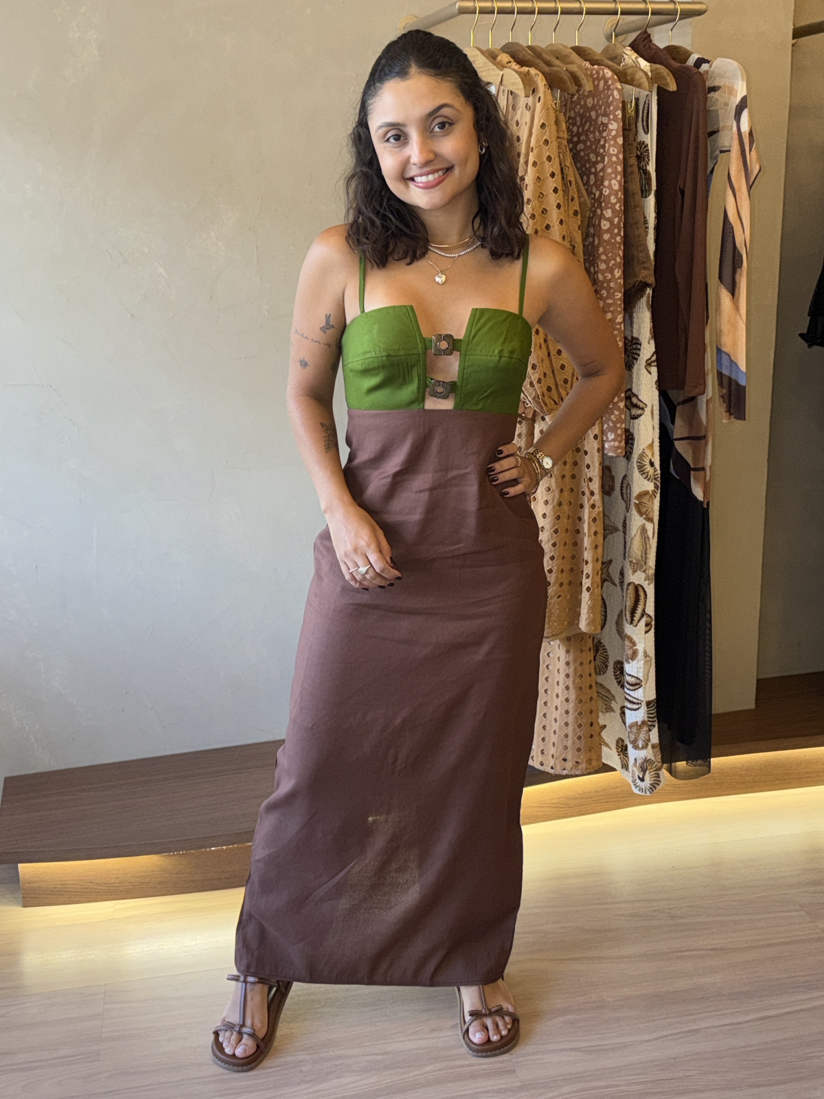 VESTIDO LINHO OPEN MARROM MALFITANO