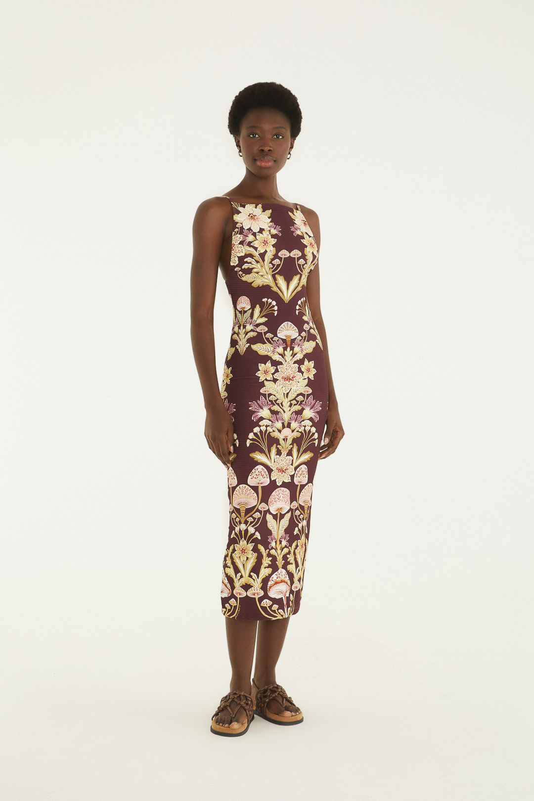 VESTIDO MIDI COGUMELO EM FLOR